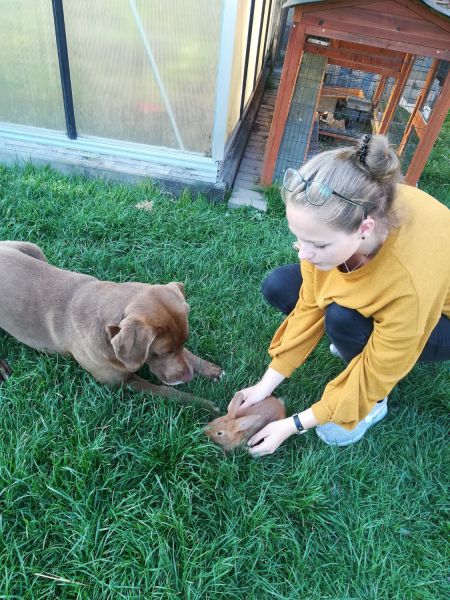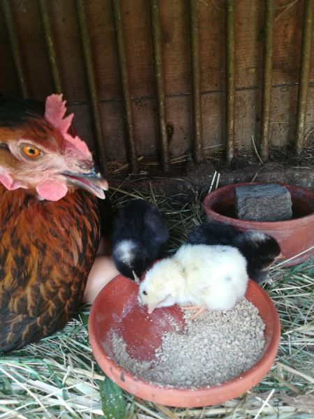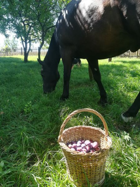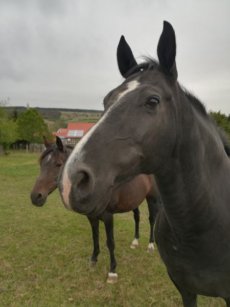 Die Katzen, Hasen, Meerschweinchen, Enten, Hühner, Pferde sowie der Hund freuen sich auf das tägliche Füttern und Streicheleinheiten. Gern können Sie bei der Arbeit auf dem Hof mit anpacken: beim Ausmisten der Ställe oder bei der Heu- und Obsternte.