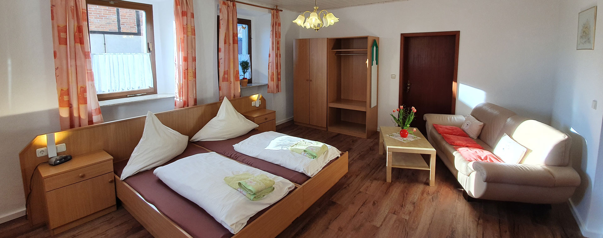 Die im EG gelegene Ferienwohnung Magdstuben (52 m2) eignet sich für 4 Personen.